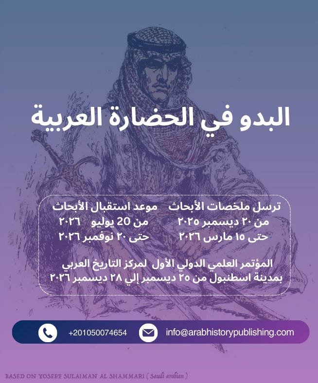 يسرّ اللجنة المنظمة للمؤتمر أن تتقدم إليكم بأسمى آيات التقدير، وتتشرف بدعوتكم للمشاركة ببحوثكم ودراساتكم الرصينة في أعمال مؤتمرنا القادم بعنوان ” البدو في الحضارة العربية”، والمزمع عقده في مدينة إسطنبول. بتاريخ 25-28 ديسمبر 2026م.